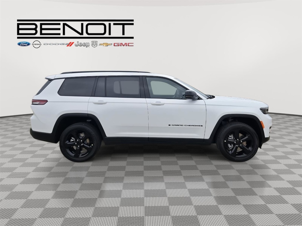 Great Choice on this 2025 Jeep Grand Cherokee L Altitude X Bright White Clearcoat with Global Black Interior. ENGINE: 3.6L V6 24V VVT UPG I W/ESS, TRANSMISSION: 8-SPEED AUTOMATIC (8HP50), QUICK ORDER PACKAGE 23M ALTITUDE X, WHEELS: 20" X 8.5" GLOSS BLACK PAINTED ALUMINUM, TIRES: 265/50R20 BSW A/S LRR, BRIGHT WHITE CLEARCOAT, GLOBAL BLACK, CAPRI LEATHERETTE/SUEDE SEATS, FRONT LICENSE PLATE BRACKET, MODEL YEAR TRACKING