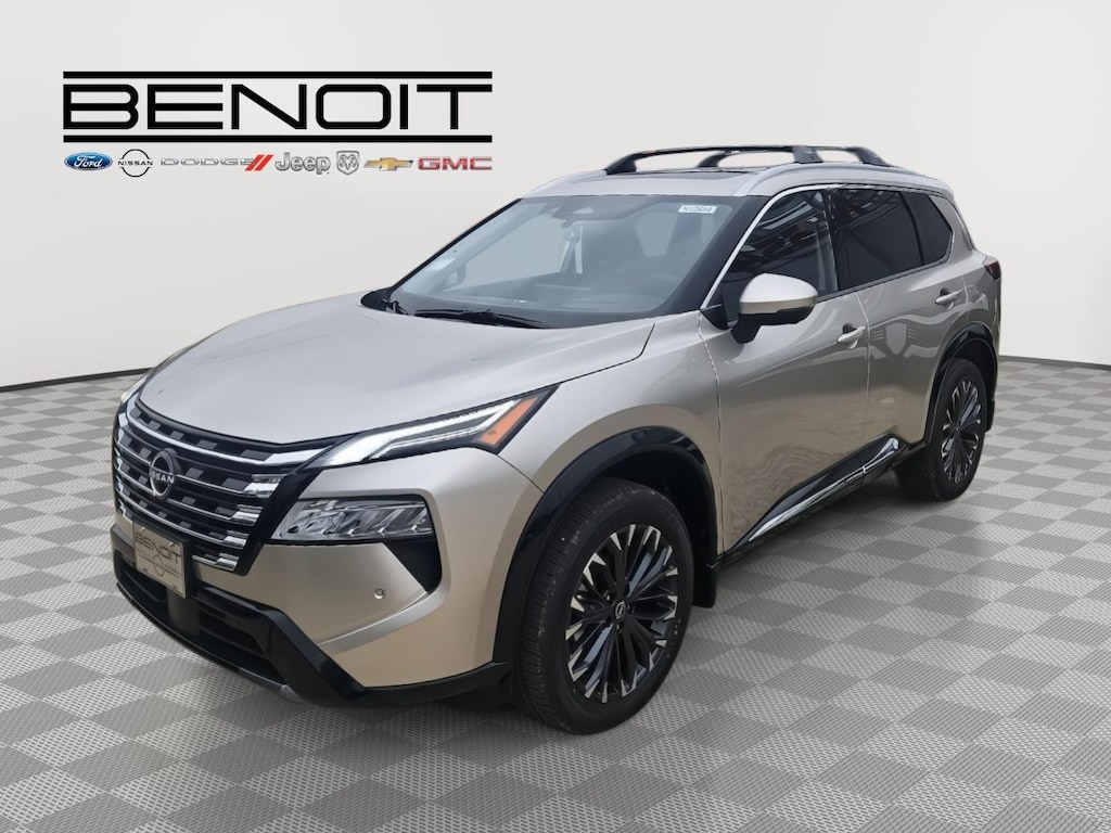 Great Choice on this 2026 Nissan Rogue Platinum Champagne Silver Metallic with Charcoal Interior. CHAMPAGNE SILVER METALLIC, CHARCOAL, QUILTED SEMI-ANILINE LEATHER-APPOINTED SEAT TRIM, [P04] PLATINUM PREMIUM PACKAGE, [C03] 50 STATE EMISSIONS, [B94] BLACK SPLASH GUARDS (SET OF 4), [B95] CHROME REAR BUMPER PROTECTOR, [L93] FLOOR MATS W/2-PIECE CARGO AREA PROTECTOR, [B96] ROOF RAIL CROSS BARS