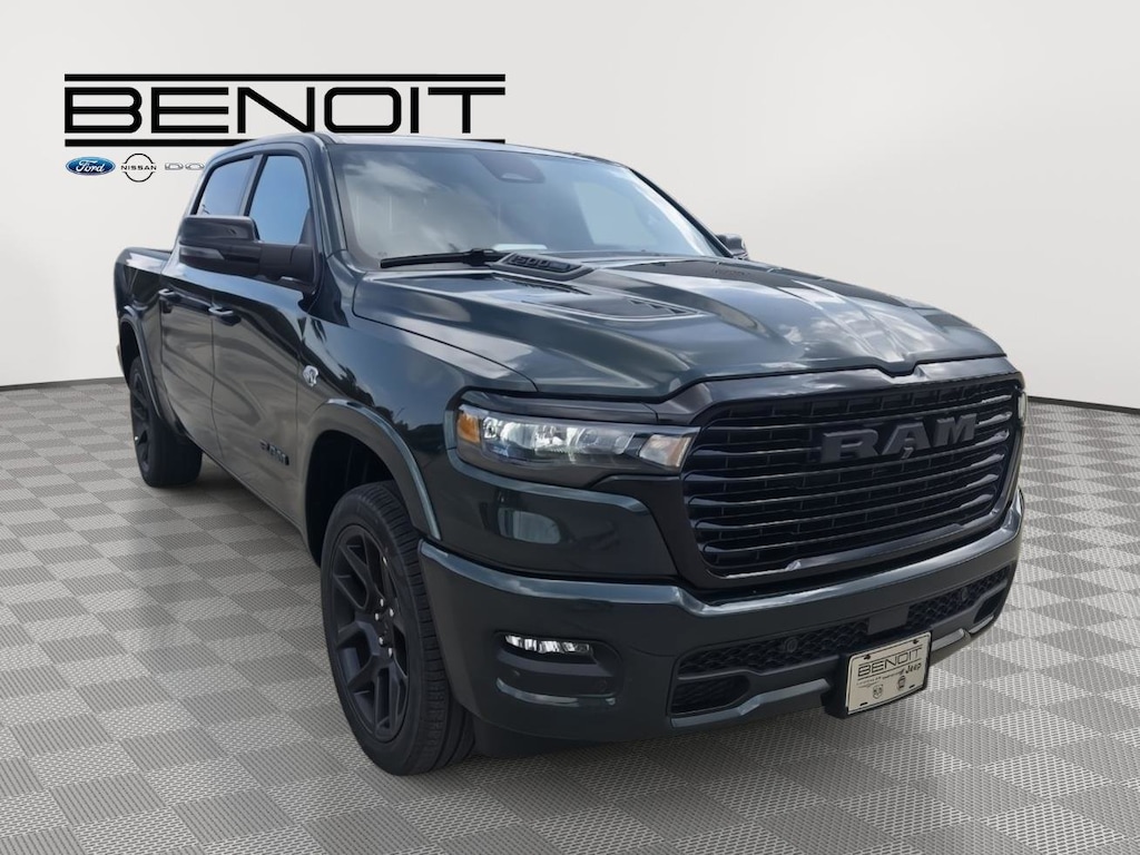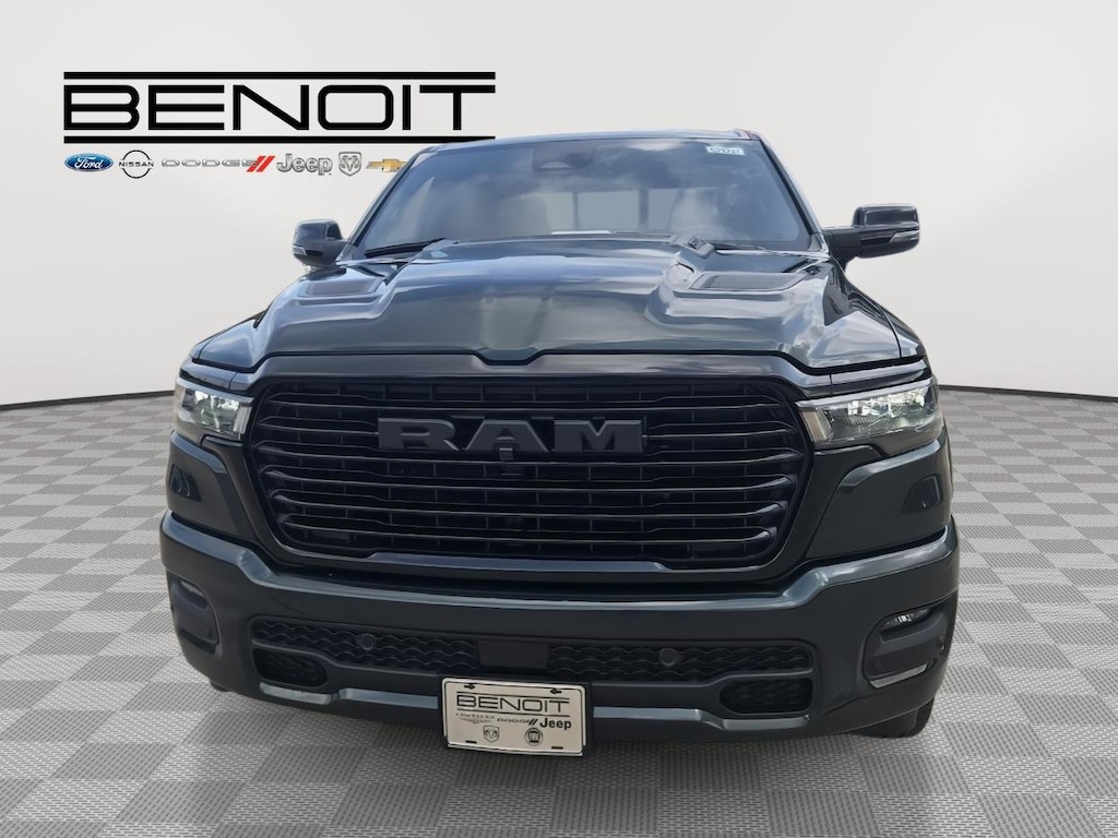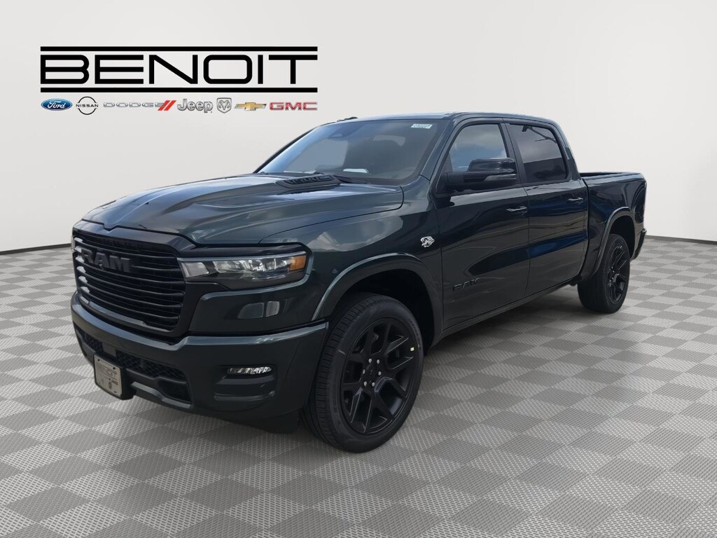 Great Choice on this 2026 Ram 1500 Laramie Serrano Green Metallic with Black Interior. ENGINE: 5.7L V8 HEMI MDS VVT ETORQUE, TRANSMISSION: 8-SPEED AUTOMATIC (8HP75), QUICK ORDER PACKAGE 27H LARAMIE, 3.92 REAR AXLE RATIO, WHEELS: 22" X 9" FORGED ALUMINUM, TIRES: 285/45R22XL BSW ALL SEASON, SERRANO GREEN METALLIC, BLACK, LEATHER TRIMMED BUCKET SEATS, NIGHT EDITION, LARAMIE LEVEL 2 EQUIPMENT GROUP, ANTI-SPIN DIFFERENTIAL REAR AXLE, MYFLEXCARE SERVICE PLAN, TRAILER BRAKE CONTROL, 33 GALLON FUEL TANK, RADIO: UCONNECT 5 NAV W/14.4" DISPLAY, MOPAR FRONT & REAR RUBBER FLOOR MATS